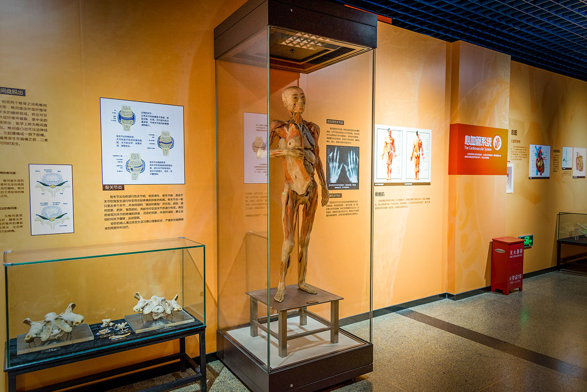 此外,我馆拥有一批制作精美的人体塑化标本和人体器官标本,这些标本不仅清晰地勾勒出人体的肌肉与经脉,而且再现了器官内部的机理和层次的质感。